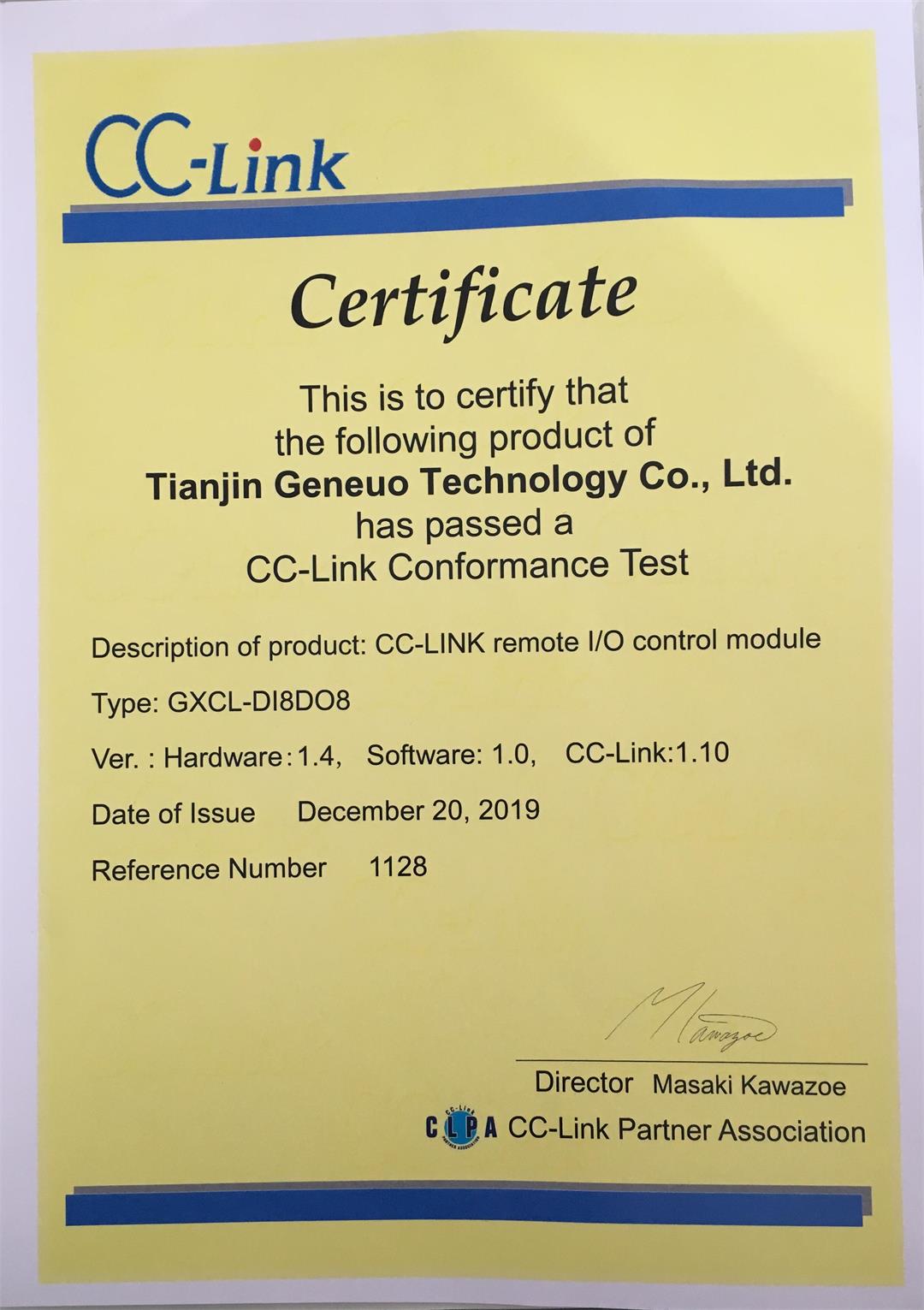 CC-Link一致性證書